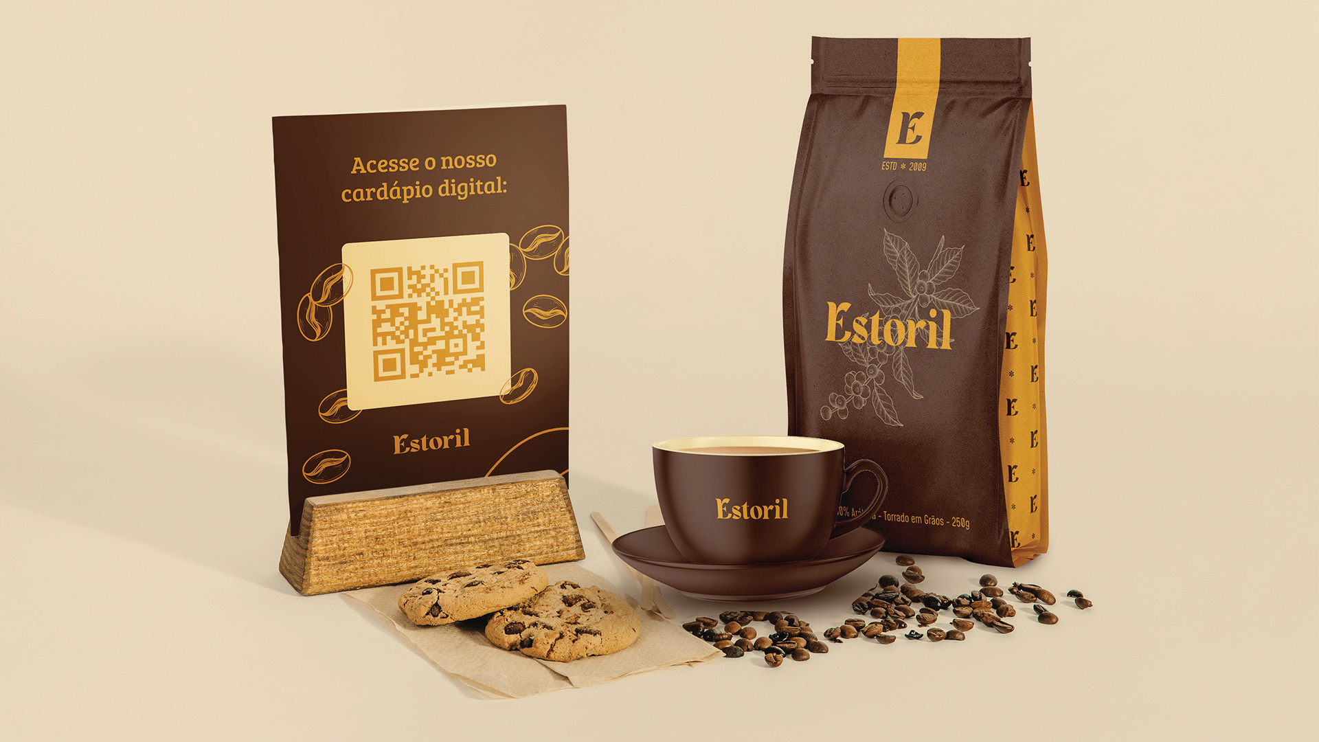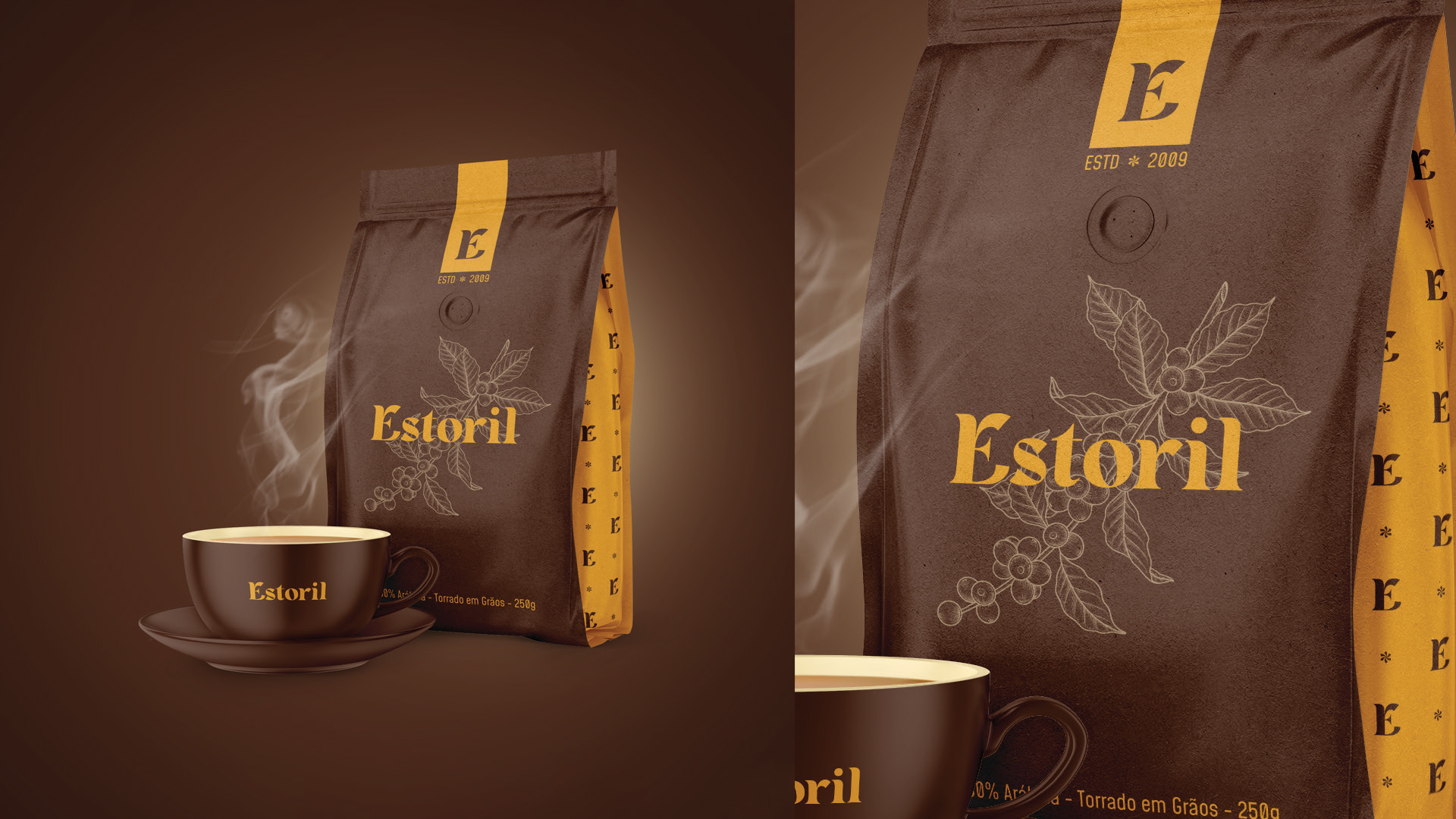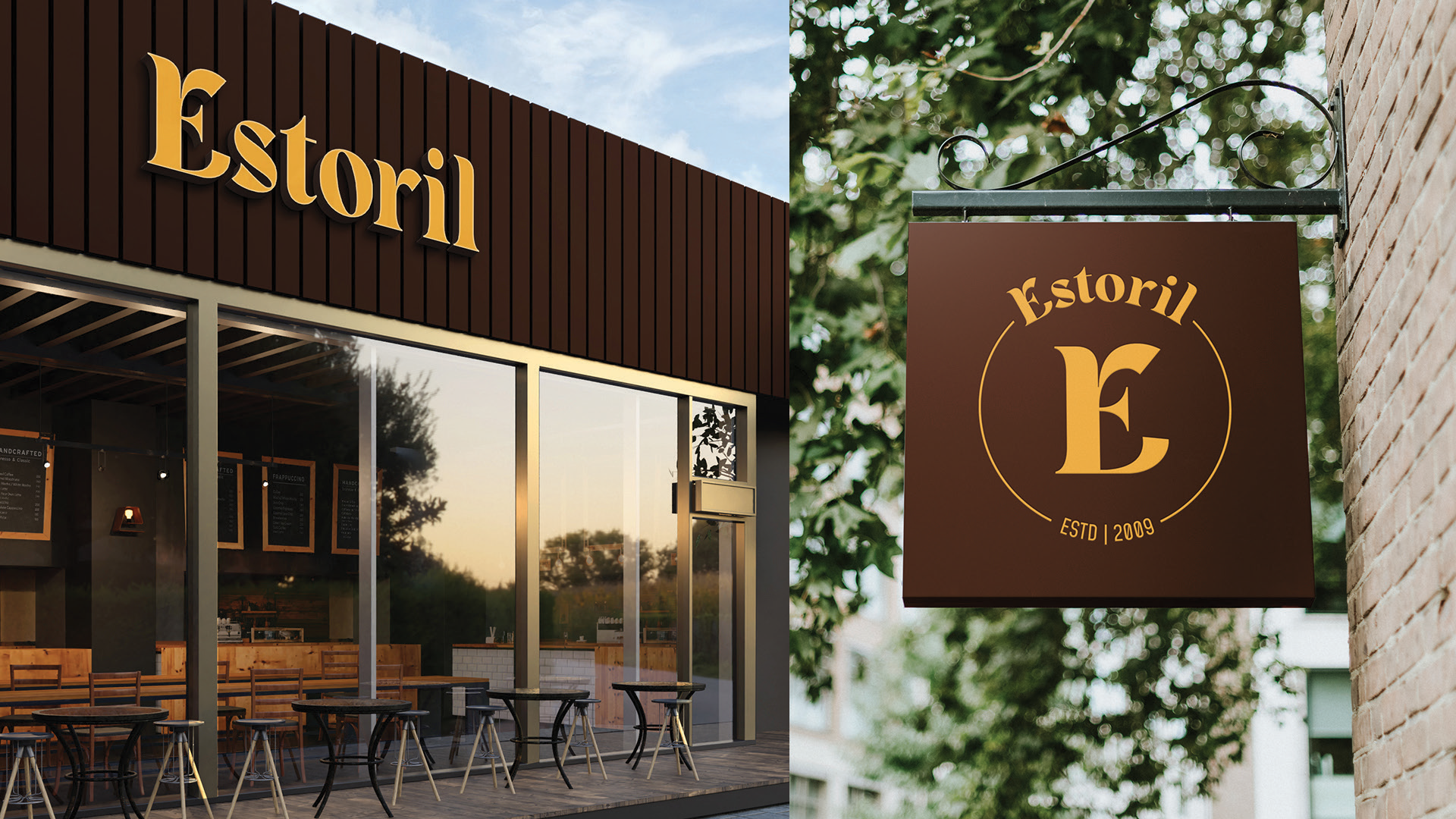 Um problema identificado em nossas análises foi a impossibilidade de representar tantos elementos e produtos em um único símbolo sem que ficasse confuso ou generalizado. Dessa maneira, para representar a marca Estoril, optamos por adotar um logotipo totalmente tipográfico como ponto originário, e assim, obtermos um símbolo a partir disso.